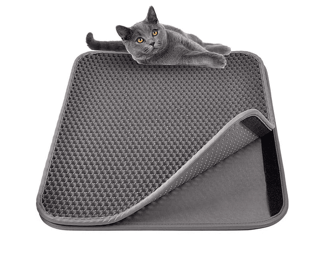 - Diseño de Doble Capa: Nuestra fombrilla de arena para gatos cuenta con una capa inferior impermeable que evita que la arena y la humedad lleguen al suelo, manteniendo tu hogar limpio y seco.