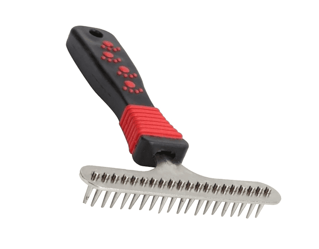 Producto nuevo y de alta calidad este peine cuenta con una linea de 20 cuchillas que pueden hacer frente a esteras incontrolables y enredos duros de forma rápida y eficiente. Eliminando la primera capa de pelo sin dañar la piel a tu mascota.