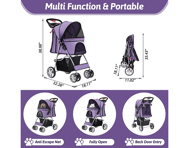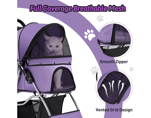 Y eso no es todo. Con medidas de alto 100 cm, largo 70 cm y ancho 45 cm, este coche puede soportar hasta 15 kg de peso, lo que lo hace perfecto para gatos, conejos, perros pequeños y otros animales de compañía. Su diseño plegable hace que sea fácil de montar y desmontar, lo que lo convierte en la opción ideal para viajes y almacenamiento.