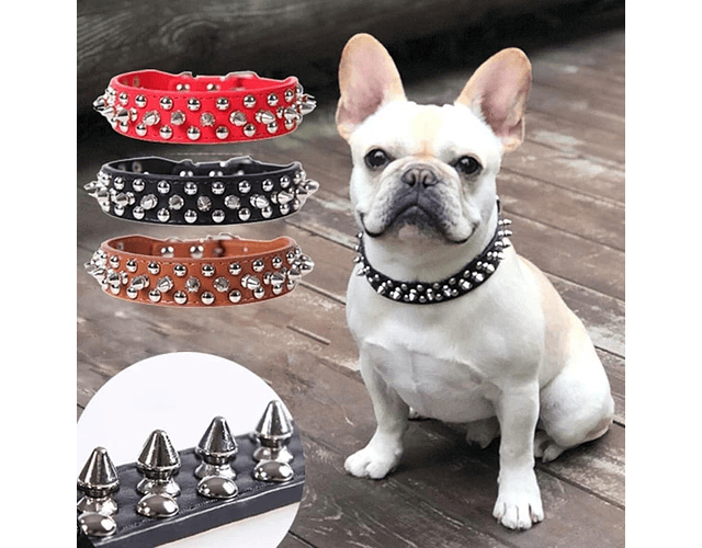 Hermosos collares con púas para razas medianas o grandes dependiendo la medida de su mascota . Diseño ligero y elegante a un precio único.