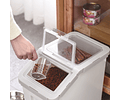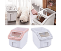 3.- Ruedas para fácil traslado: Facilita la movilidad con las ruedas incorporadas. Traslada el contenedor con facilidad, haciendo que la alimentación de tus mascotas sea conveniente en cualquier lugar de tu hogar.