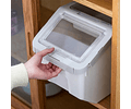 7.- Fácil de almacenar: Con su diseño compacto, este contenedor se guarda fácilmente en cualquier mueble de cocina, logia o lavandería. Optimiza el espacio y mantiene la comida de tus mascotas al alcance.