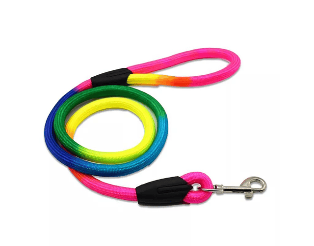 Espectacular correa colorida multicolor para perros. Recomendable para mascotas pequeñas o medianas. Apto para perros y gatos.