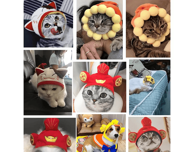 Espectaculares y divertidos gorros para mascotas. Adecuado para la mayoría de los gatos de tamaño medio y perros pequeños.