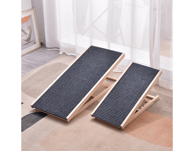 1.- Universal y Segura: Esta escalera rampa es apta para perros y gatos pequeños, medianos y grandes, ofreciendo un acceso fácil y seguro a lugares elevados. Las patas antideslizantes aseguran estabilidad, protegiendo los suelos, mientras que la superficie texturizada evita resbalones, siendo especialmente beneficiosa para mascotas con problemas articulares.