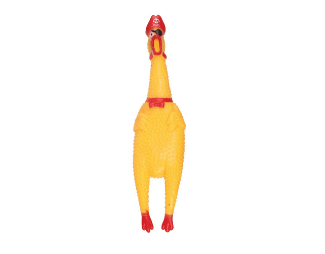 Ahora en su versión pirata, este pollo chillón tiene un aspecto único que hará reír a todos mientras tu mascota disfruta de su juguete favorito. Su tamaño de aproximadamente 30 cm lo hace perfecto para perros de diferentes tamaños.