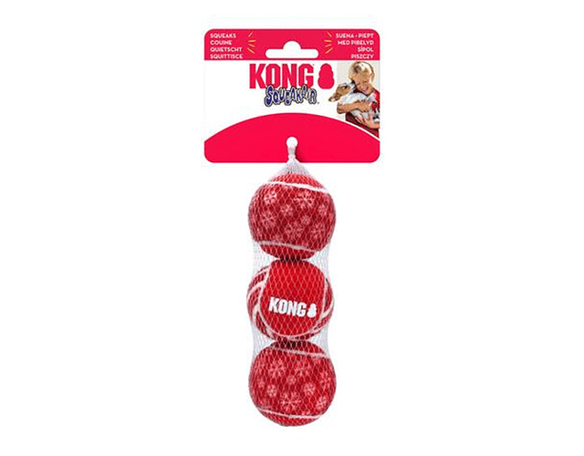 La KONG SqueakAir Ball combina dos juguetes clásicos para perros que la hacen perfecta para el juego de buscar y recoger: la pelota de tenis y el chirriador.