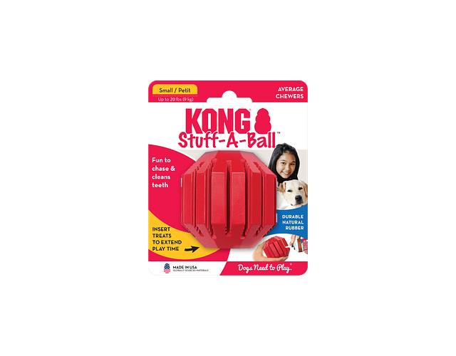 Apoyo a la Masticación: La pelota KONG Stuff-A-Ball S es perfecta para perros pequeños que adoran masticar. Fabricada con el caucho duradero KONG Classic, esta pelota proporciona una superficie segura y satisfactoria para que tu perro canalice su necesidad instintiva de masticación.