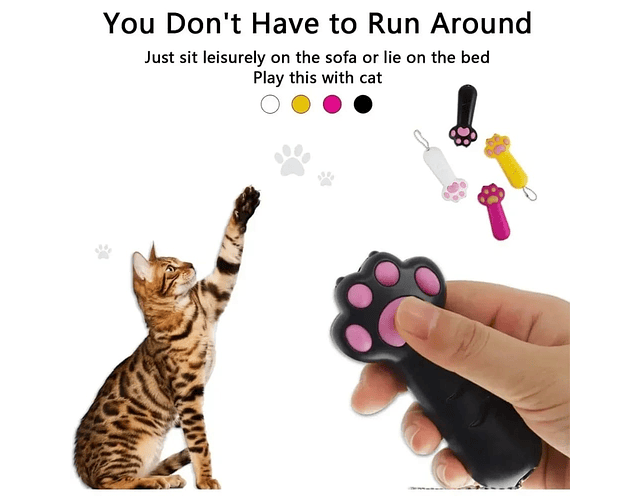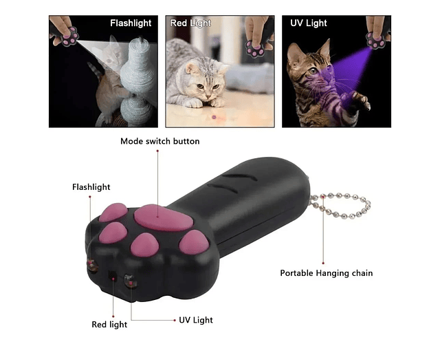 Mantén a tu mascota entretenida y activa con este juguete láser interactivo en forma de pata de gato. Su diseño original y compacto ofrece una manera divertida de estimular el ejercicio en gatos y perros, ideal para momentos de juego en interiores. El puntero láser rojo capta fácilmente la atención de tu mascota, ayudando a canalizar su energía de forma positiva.