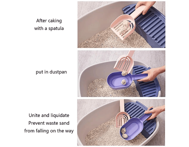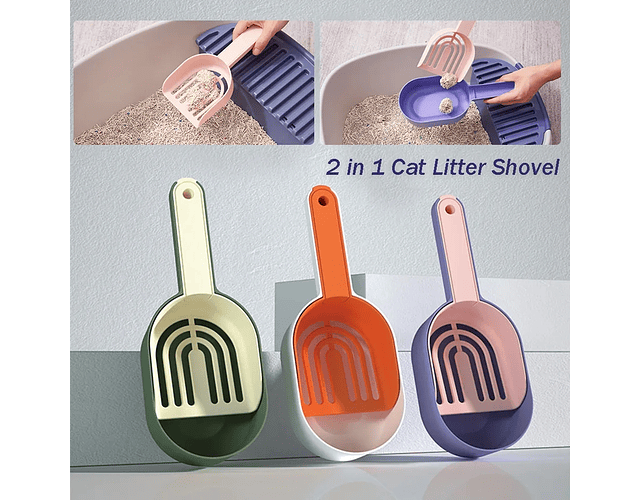 Espectacular pala sanitaria 2 en 1 para gatos. Su diseño y forma la hacen perfecta para retirar las deposiciones de los gatos de forma rápida y cómoda, permitiendo al usuario recoger una gran cantidad de residuos para mantener la higiene del baño sanitario de su gato impecable.