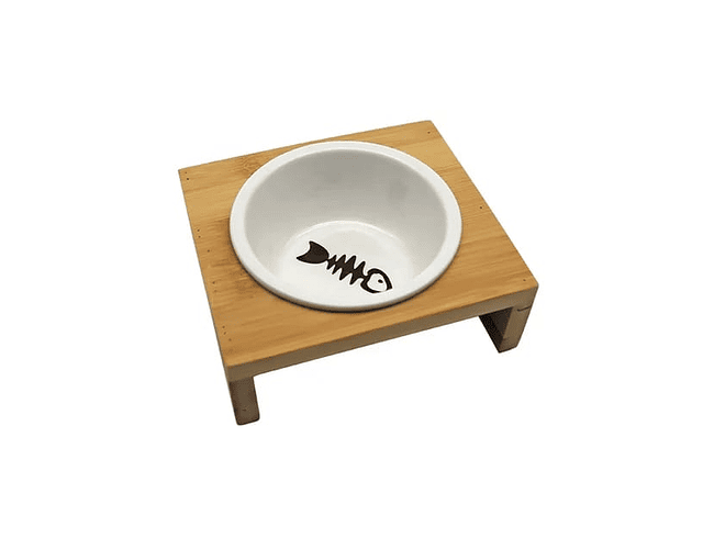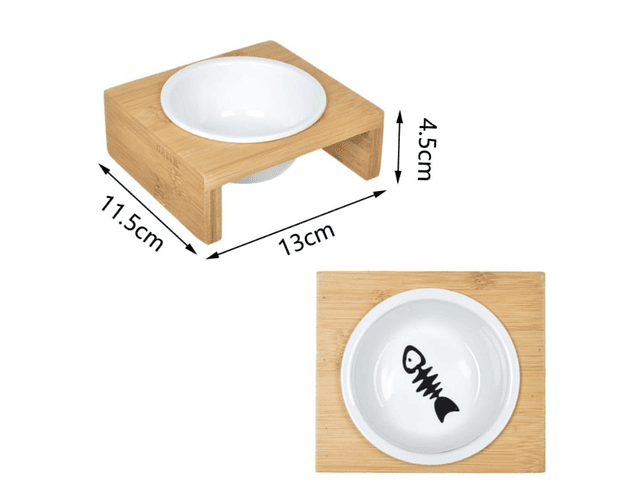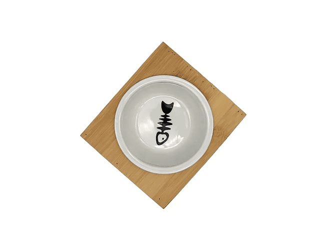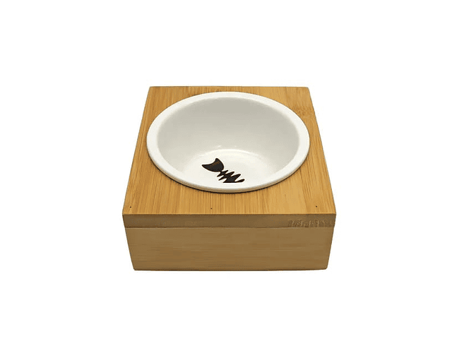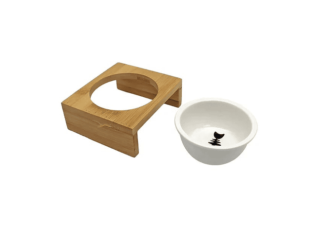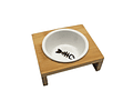 Hermoso plato en altura para los peluditos del hogar. Comedero individual desmontable y portátil.Contenido por compra: 1 Unidad. (Plato de Loza + Base Madera)Medidas: 12 x 13 x 5 cm aprox.