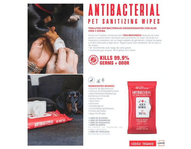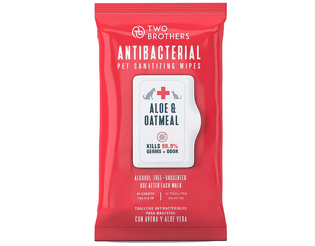 Las toallitas naturales TWO BROTHERS están especialmente formuladas para eliminar la suciedad y olores de la piel y pelaje de tu mascota. Eliminan el 99.9% de gérmenes y olores presentes en la piel y pelaje de tu mascota, conservando la hidratación.