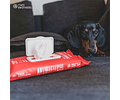 Fórmula hipoalergénica, libre de Alcohol y fragancias. No contienen jabón, por lo que no interfieren con productos tópicos anti pulgas y garrapatas. Envase de 40 toallitas de 20x30 cm (415 gramos).