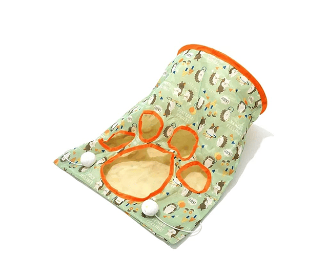 Fabricado con poliéster de alta calidad, bola de lana y papel de ratán, este túnel ofrece una construcción robusta y segura. Los delicados bordes redondeados aseguran que tus mascotas no se lastimen mientras juegan. Además, incluye una bola de peluche integrada para añadir un nivel extra de entretenimiento.